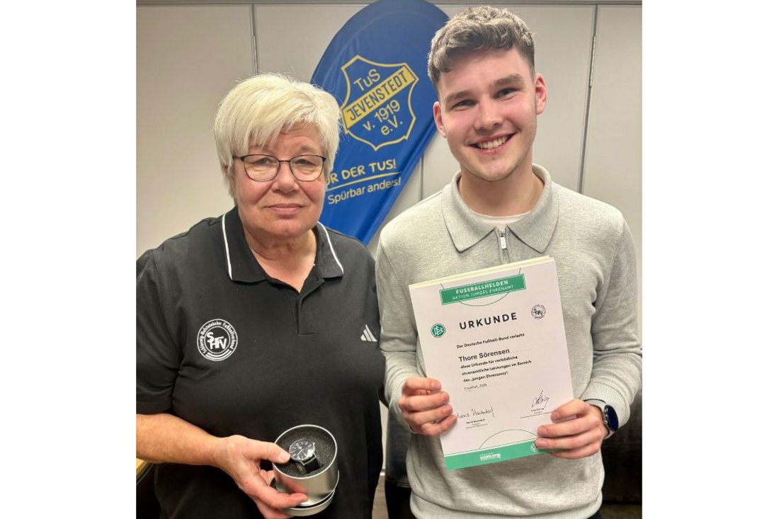 Eine besondere Auszeichnung erhielt der 22-jährige Thore Sörensen. Der U17-Trainer, Mitorganisator des Jevenau-Cups sowie Mitglied im Stadionsprecher- und Social-Media-Team wurde von Ulrike Krieger vom Schleswig-Holsteinischen Fußballverband als „Fußballheld“ ausgezeichnet. Der Preis gehört zur DFB-Aktion „Junges Ehrenamt“ und würdigt engagierte junge Menschen im Kinder- und Jugendfußball.