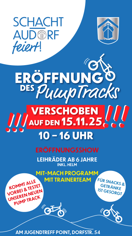 Am 15.11.25 gibt es eine tolle Eröffnungsshow mit Leihbikes und Fahrtechnik-Kursen für Begeisterung bei Groß und Klein. Seid dabei, ihr seid alle herzlich willkommen am Point in Schacht-Audorf